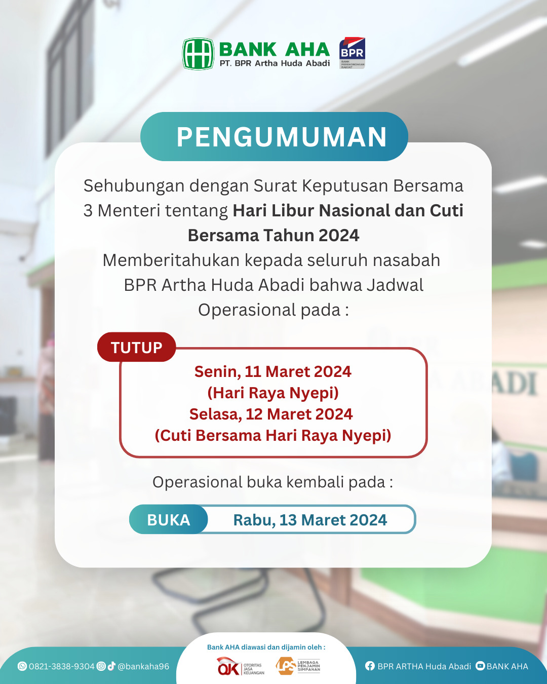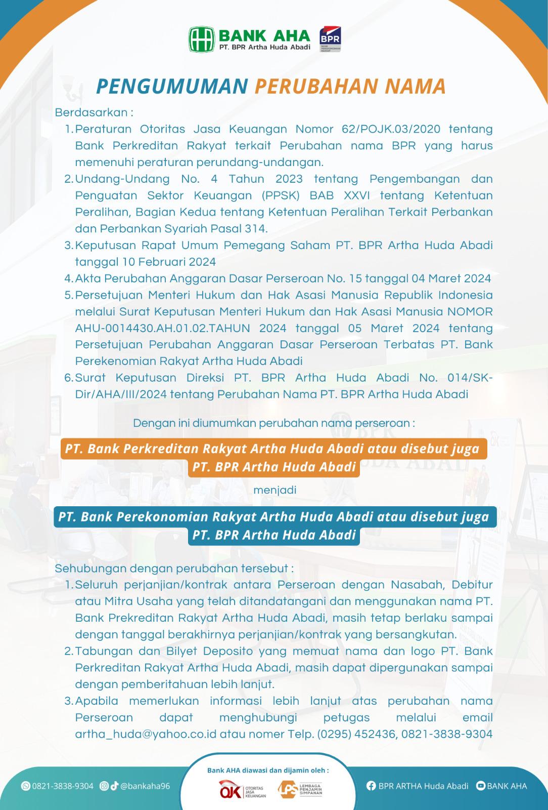 Kepada Yth. Bapak/Ibu Nasabah PT. BPR Artha Huda Abadi.