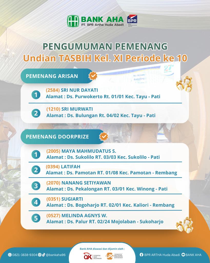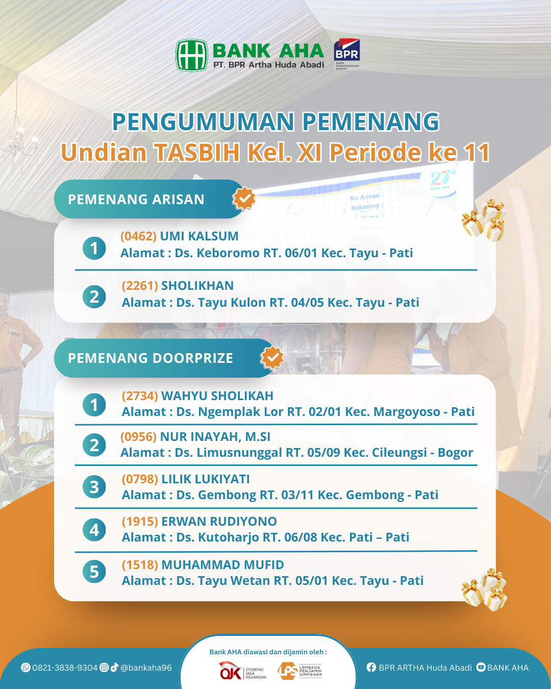 Berikut kami umumkan pemenang undian tasbih kelompok XI perio...