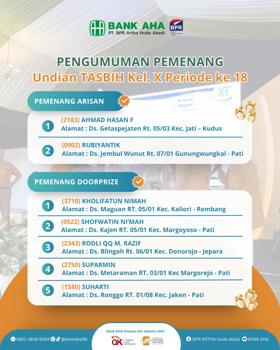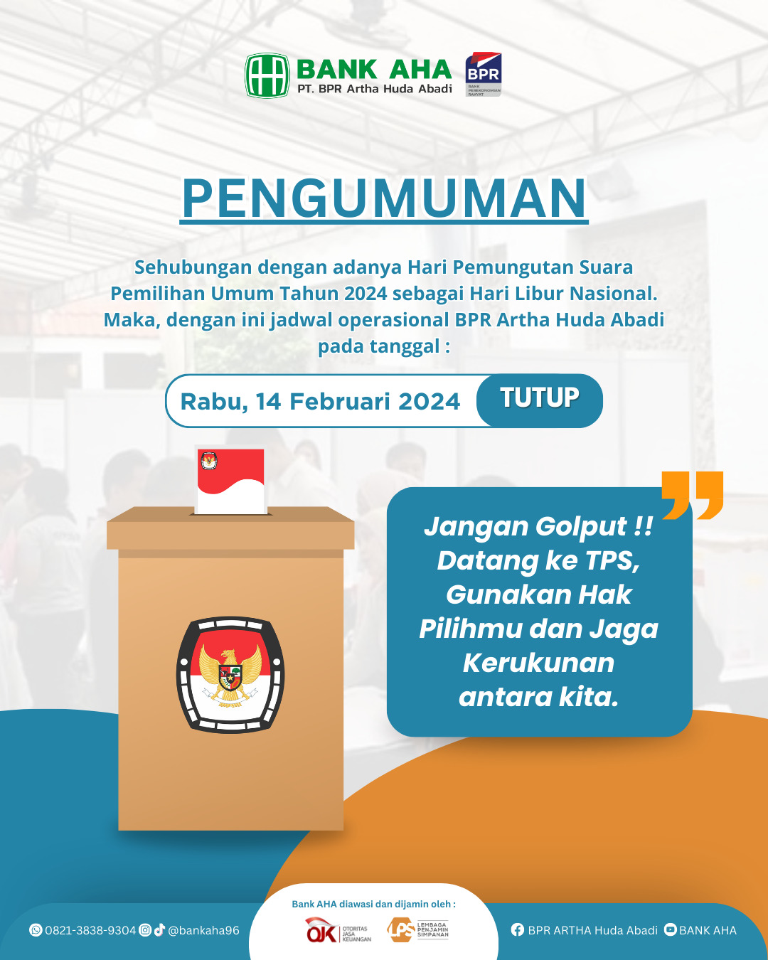 Kepada seluruh Nasabah PT. BPR Artha Huda Abadi, berikut kami...